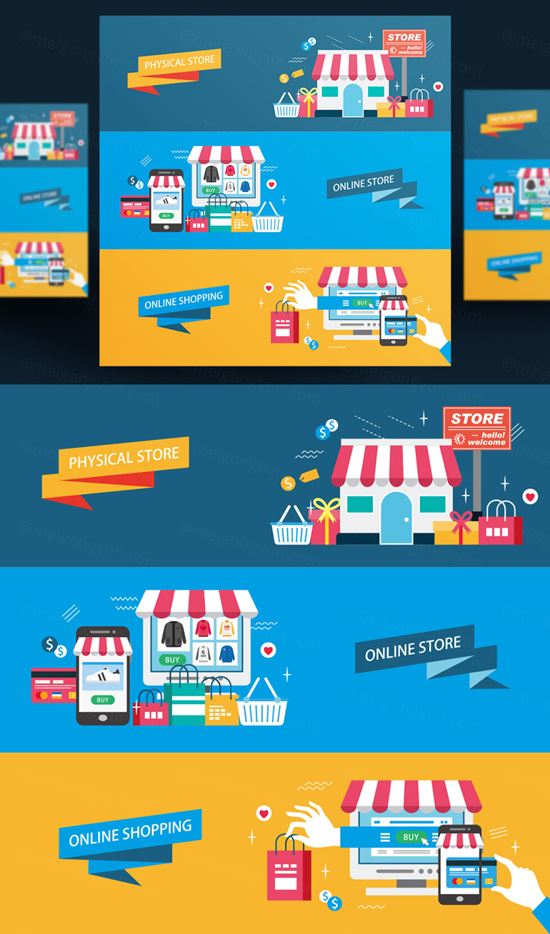 图穷联素材库 » 网上商店购物便利店平面设计插图矢量素材模板Shopping flat design
