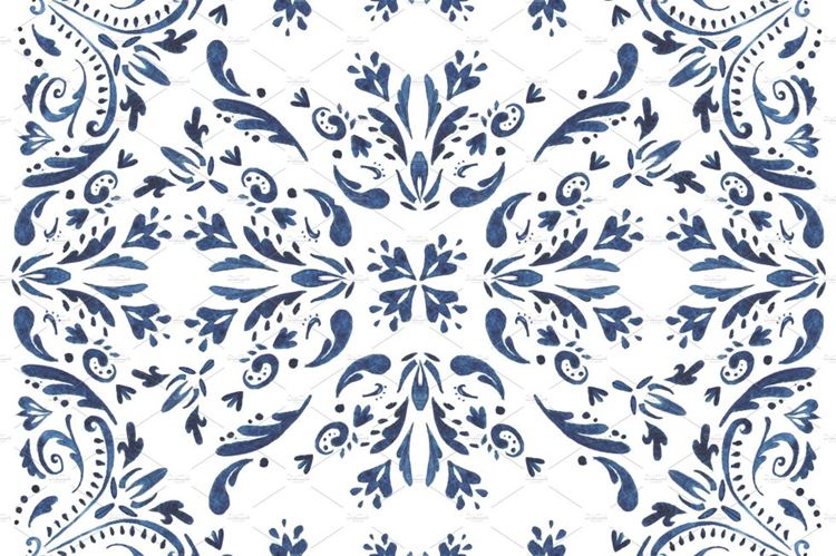 图穷联素材库 » 蓝色水彩花卉图形素材包 Watercolor illustration