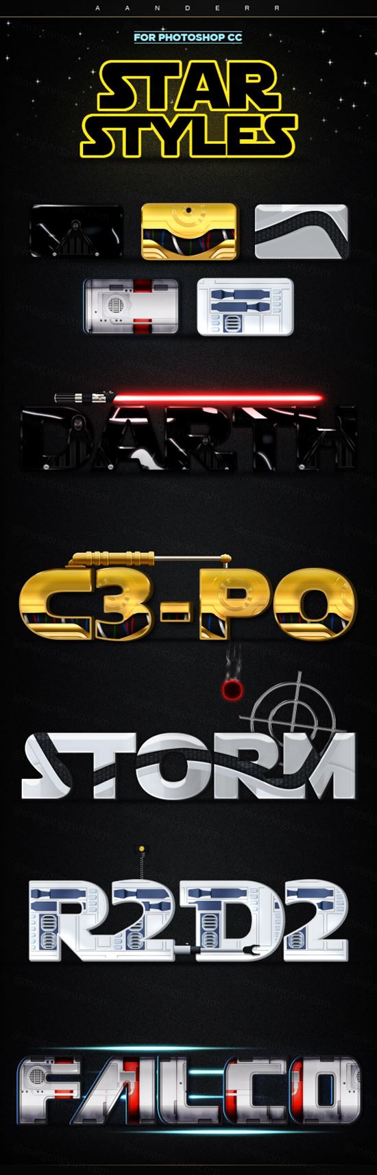 高端星球大战风格3D立体PSD图层样式素材Star Styles