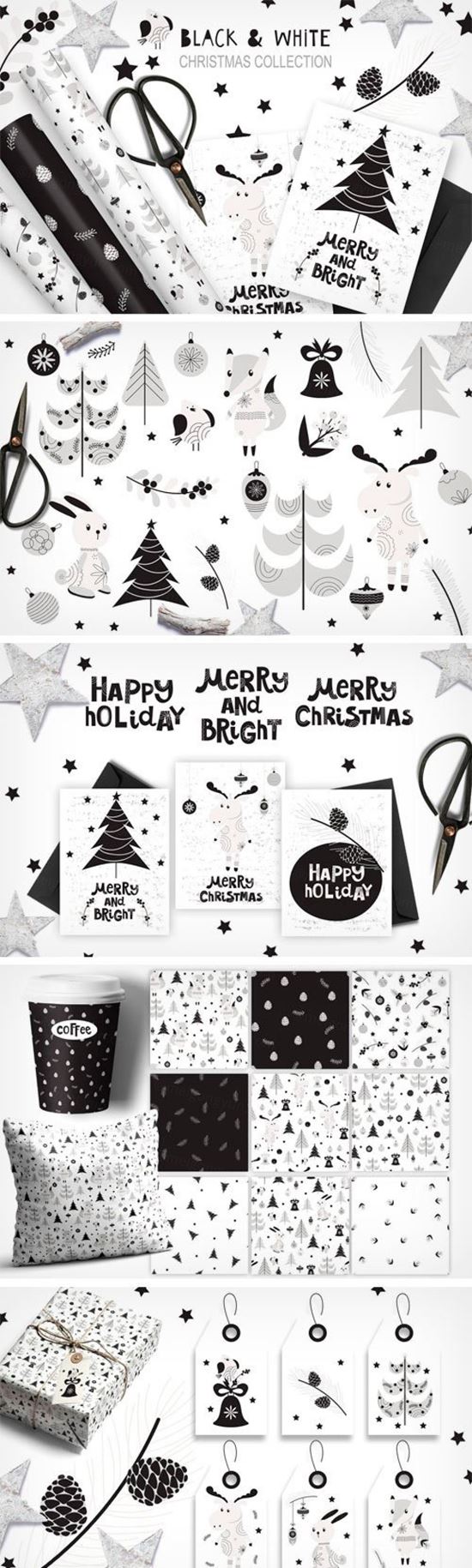 图穷联素材库 » 森林动植物手绘圣诞无缝背景元素iamxk.com_White and Black Christmas Collection ...
