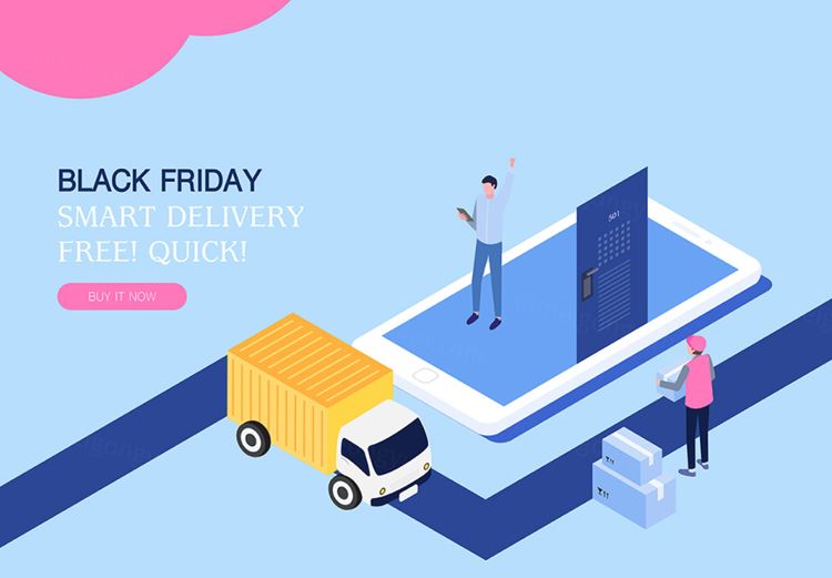 【智能家居/物流】黑色星期五热门销售产业2.5D等距风格Web UI插画素材