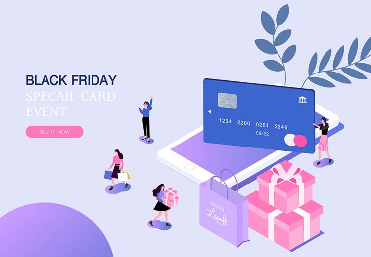 图穷联素材库 » 【信用卡支付】黑色星期五热门销售产业2.5D等距风格Web UI插画素材