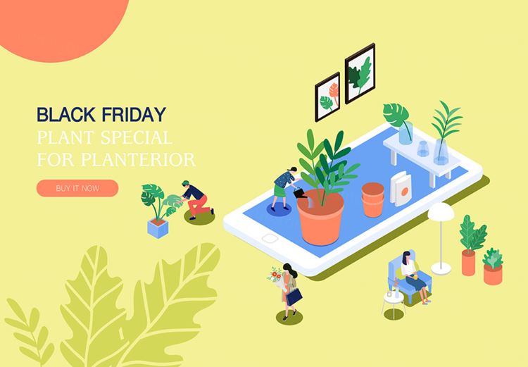图穷联素材库 » 【鲜花/盆栽】黑色星期五热门销售产业2.5D等距风格Web UI插画素材