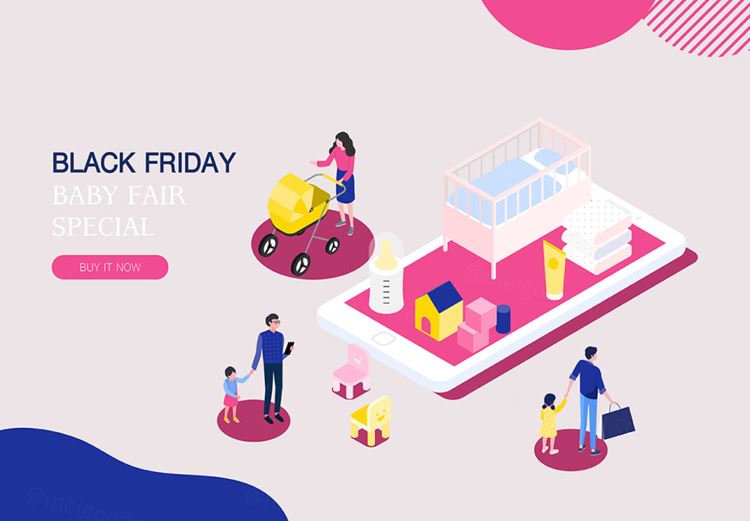 图穷联素材库 » 【母婴】黑色星期五热门销售产业2.5D等距风格Web UI插画素材