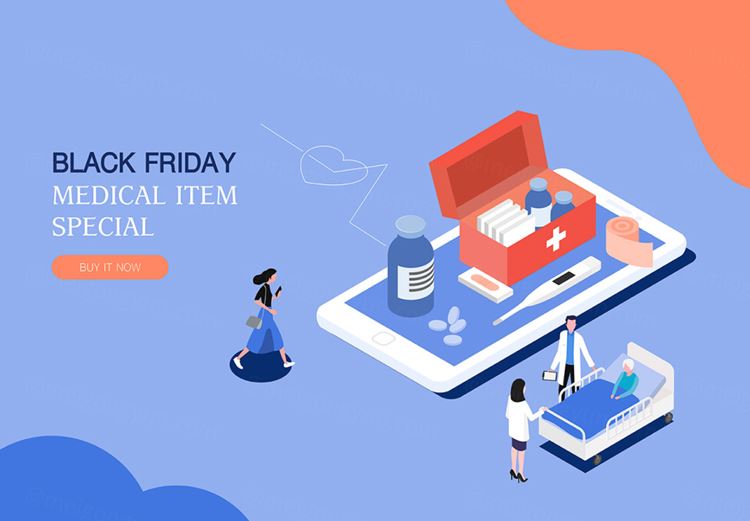 【药品医护】黑色星期五热门销售产业2.5D等距风格Web UI插画素材