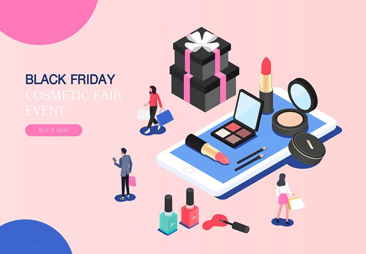 图穷联素材库 » 【美妆美容】黑色星期五热门销售产业2.5D等距风格Web UI插画素材