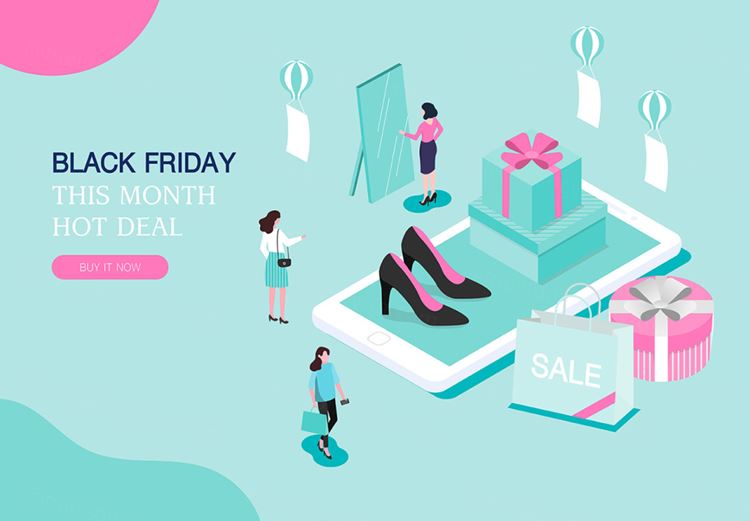 图穷联素材库 » 【女士女装】黑色星期五热门销售产业2.5D等距风格Web UI插画素材