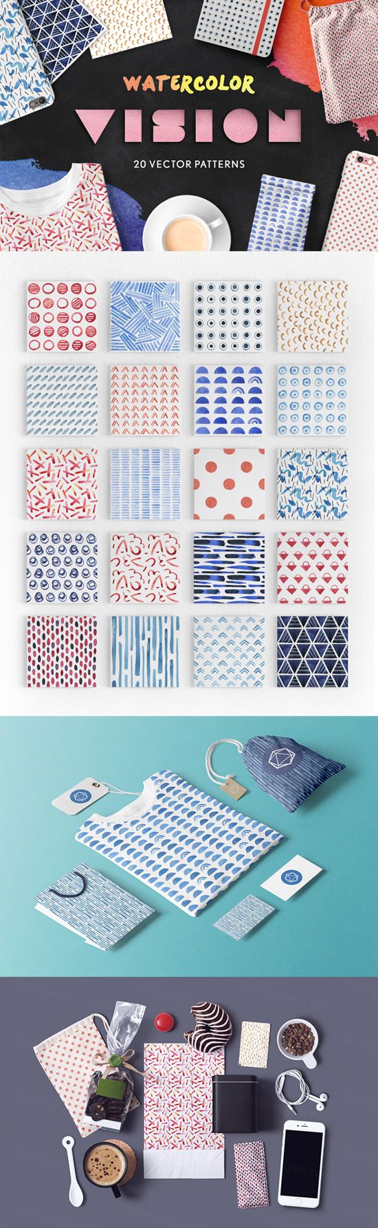 图穷联素材库 » 创意手绘水彩无缝背景设计素材