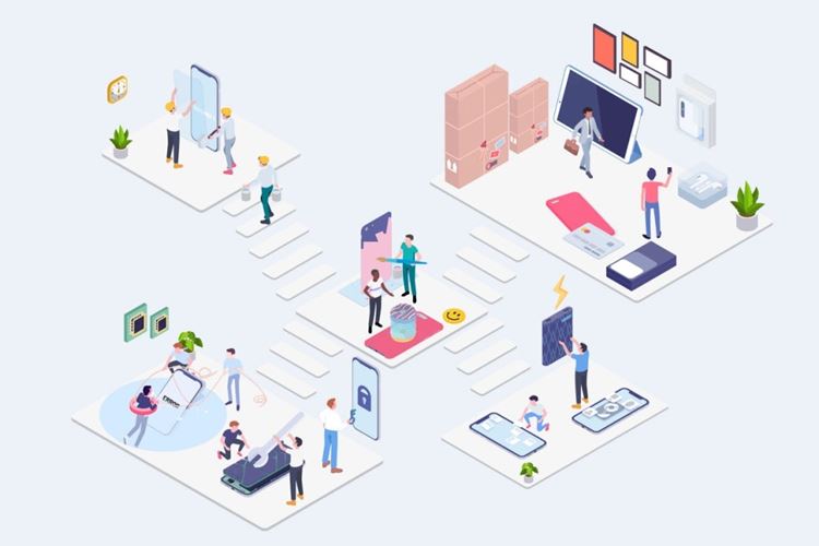 图穷联素材库 » 品牌顾客售后服务等距概念插画 elements-warranty-customer-care-service-isometri...