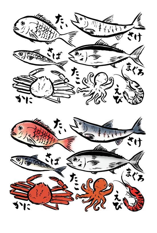 图穷联素材库 » 日式料理店视觉毛笔手会海鲜鱼类矢量素材1