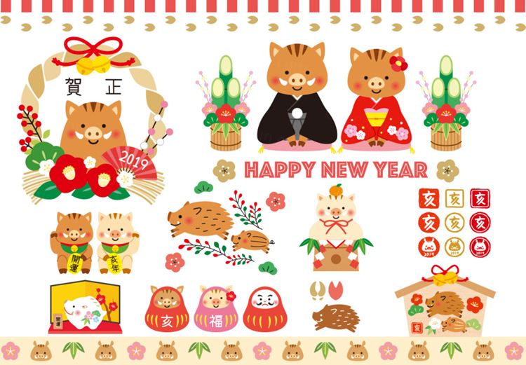 2019年东方猪年己亥年贺年传统矢量免扣素材合集包