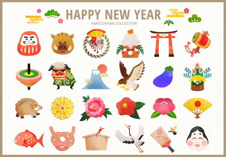 图穷联素材库 » 2019手绘日式新年元素矢量插图合辑包
