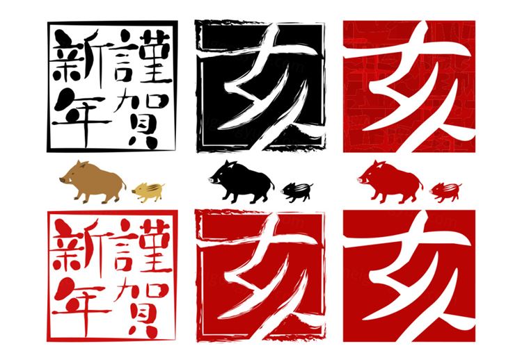 图穷联素材库 » 2019谨贺新年毛笔字矢量素材