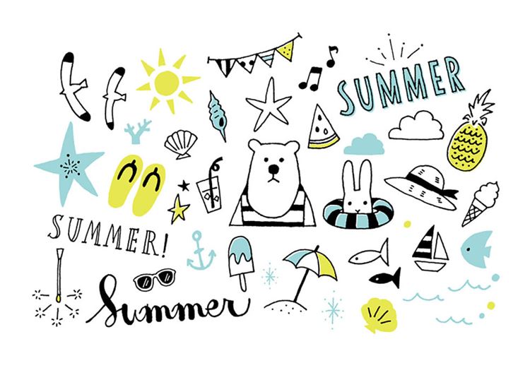 图穷联素材库 » 小清新日系和风蓝色风格夏日海滩免扣矢量素材