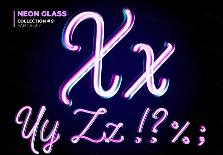 图穷联素材库 » 霓虹灯3D玻璃夜光特效字母字体矢量素材 Neon Glass