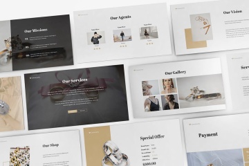 图穷联素材库 » 时尚高端优雅结婚婚礼珠宝店powerpoint幻灯片演示模板