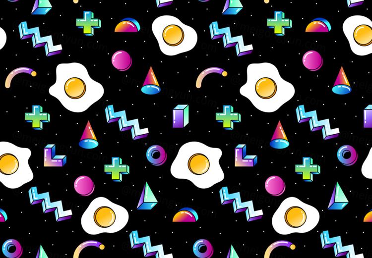 80~90年代孟菲斯风格复古抽象几何形状无缝拼接图案