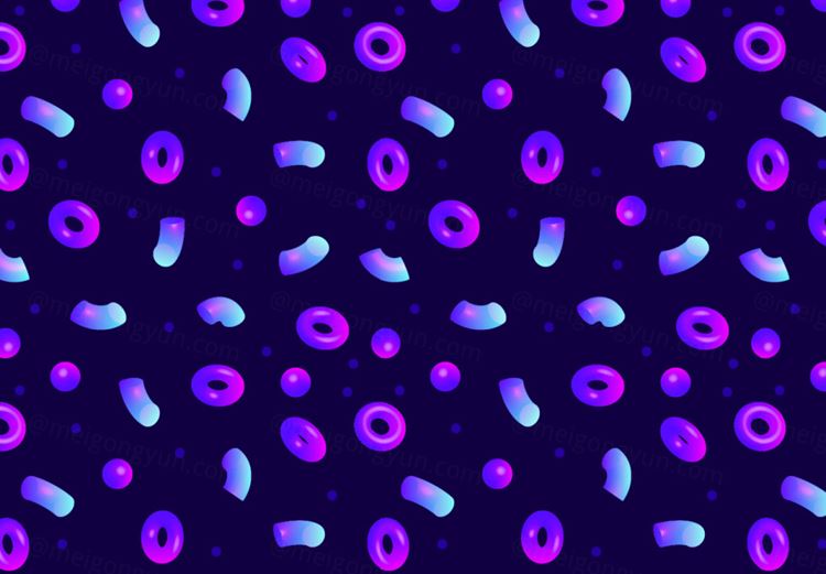 图穷联素材库 » 80~90年代孟菲斯风格复古抽象几何3D流体渐变形状无缝拼接图案