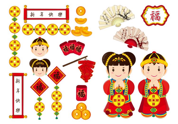 图穷联素材库 » 2019年新年快乐中国日本东方传统元素新年氛围素材矢量合辑包 Happy Chinese new year