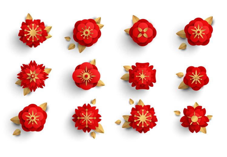 图穷联素材库 » 传统日式红色折纸剪纸艺术金叶的花 EPS矢量图素材
