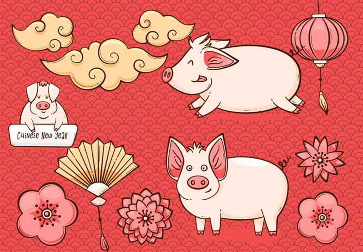 图穷联素材库 » 2019年新年快乐中国日本东方传统元素新年氛围素材矢量合辑包 Happy chinese new year