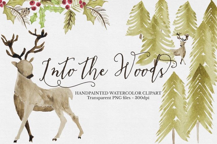 手绘水彩林地主题插画素材 SALE-Watercolor-WoodlandClipart-Set