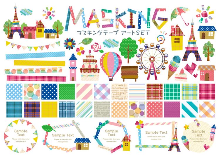 图穷联素材库 » 日式可爱风格布纹图案边框AI矢量素材合辑