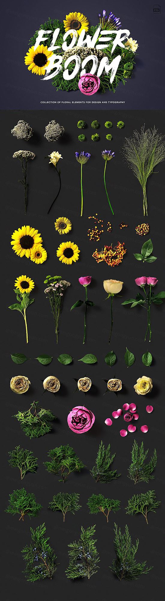 图穷联素材库 » 节日气氛50多款鲜花植物元素场景搭建免抠png