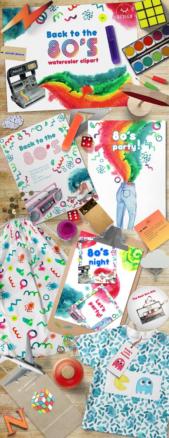图穷联素材库 » 80后复古物品的水彩风格素材合辑下载Retro 80s Watercolor Clipart