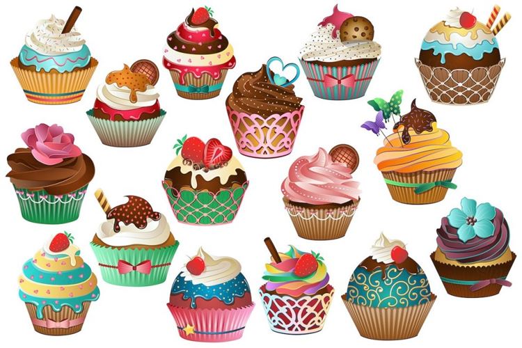 图穷联素材库 » 漂亮的手绘纸杯蛋糕插画 Cupcake Clipart Vector PNG JPG