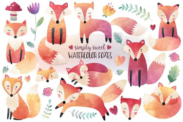 图穷联素材库 » 可爱水彩狐狸林地设计元素 Watercolor Fox Clipart Bundle