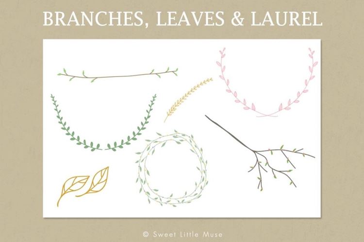 图穷联素材库 » 文艺清新手绘树枝插画合集Art Branches Leaves Laurel