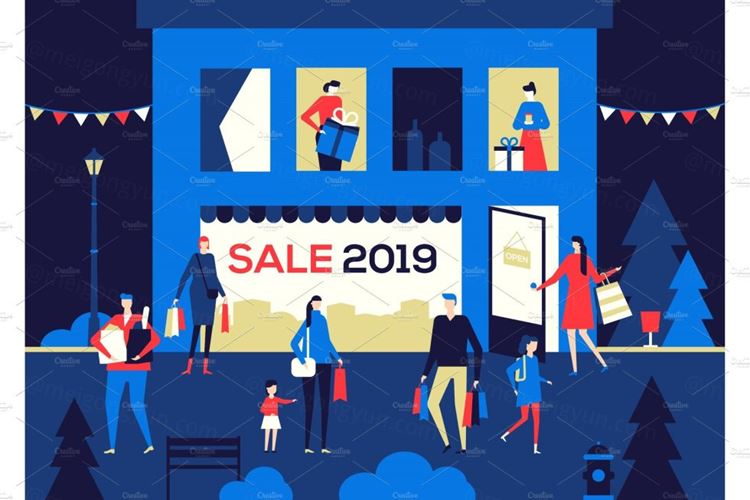 新年扁平化风格购物促销主题插画 flat design style illustration