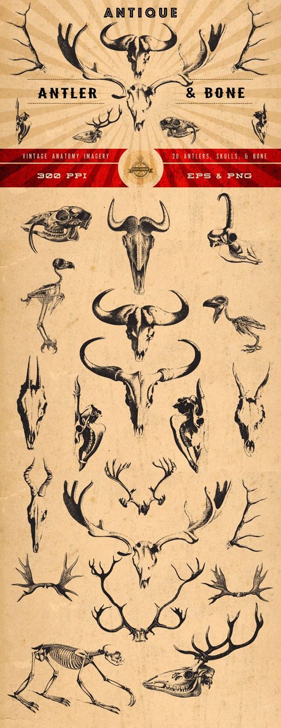 图穷联素材库 » 怀旧鹿角插画素材 Antique Antler Bone Graphics