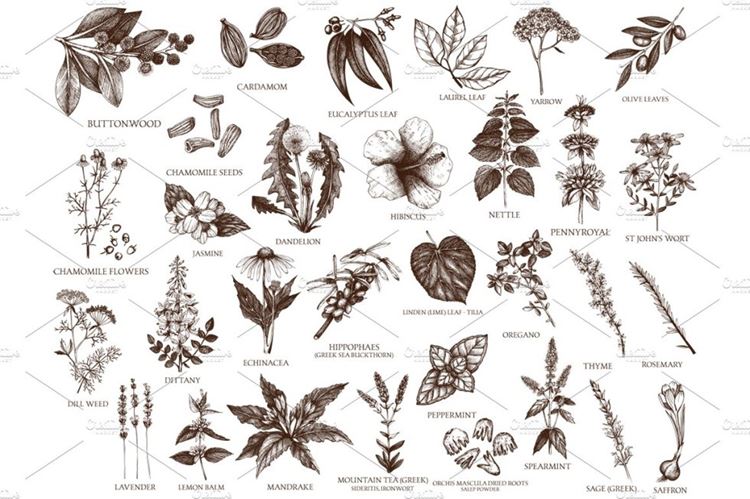 图穷联素材库 » 矢量种子植物素描插画 Vector Plants , Herbs , Seeds Set