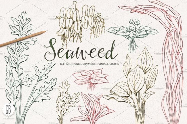 图穷联素材库 » 经典手绘海藻插画下载 Seaweeds , hand drawn , vintage