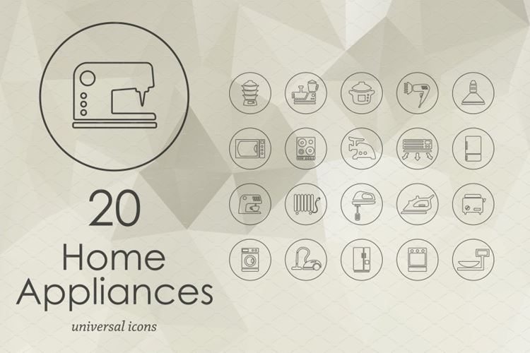 图穷联素材库 » 20个家用电器系列图标 household appliances line icons
