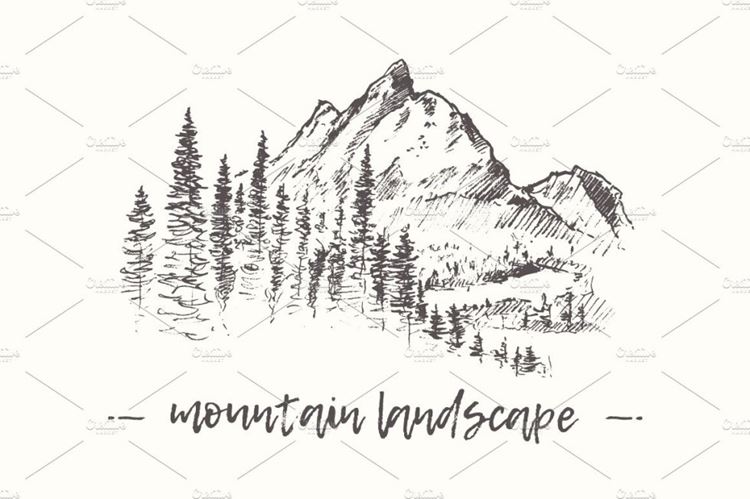 图穷联素材库 » 大山的插画 Mountain slopes with a pine forest