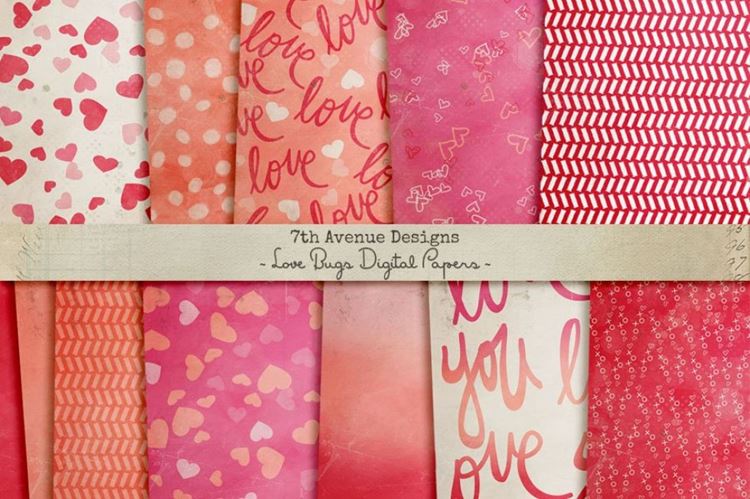 图穷联素材库 » 爱心图形背景纹理 Love Bugs Digital Papers