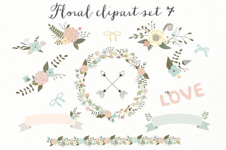 图穷联素材库 » 薄荷和桃子插花艺术 mint and peach floral clip art