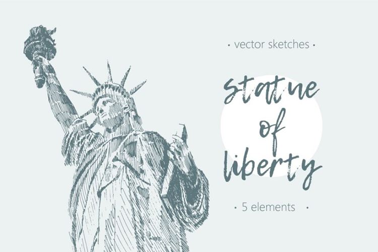 图穷联素材库 » 自由女神像的素描 Set of sketches of Statue of Liberty