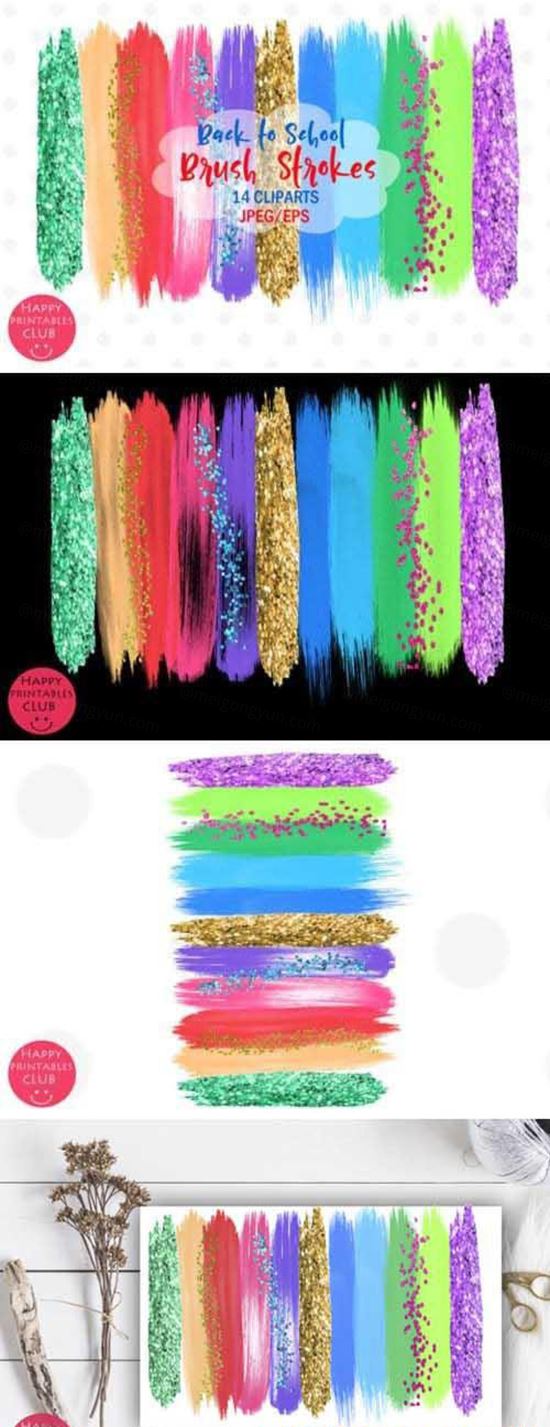 图穷联素材库 » 多彩笔刷剪贴画设计素材Back to School Brush Strokes Clipart