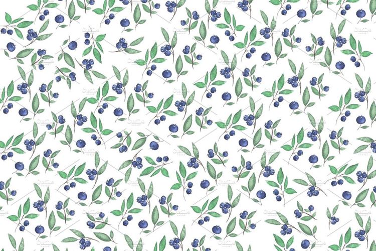 图穷联素材库 » 水彩越桔和树枝插画 Watercolor bilberries and branches