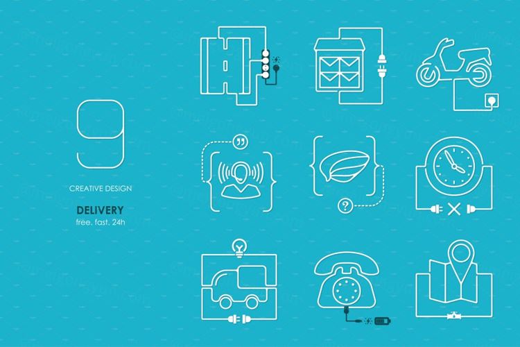 图穷联素材库 » 快递沟通矢量图标 Delivery connection flat design