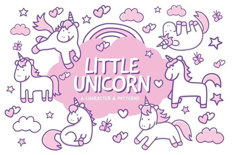 图穷联素材库 » 清新小独角兽卡通插画海报矢量素材