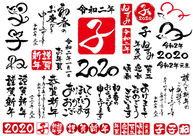2020新年贺卡清新风格毛笔中国传统风老鼠生效矢量插画1516525