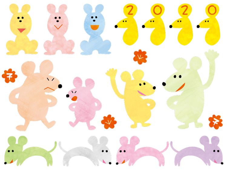 图穷联素材库 » 2020新年贺卡清新风格卡通老鼠生效矢量插画1581091