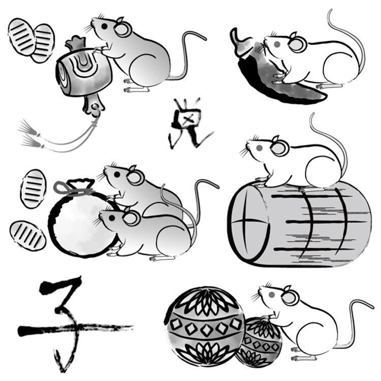 图穷联素材库 » 2020新年贺卡清新风格毛笔中国传统风老鼠生效矢量插画1600836