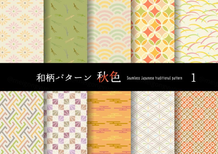 图穷联素材库 » 日式温暖的秋色系无缝拼接印刷矢量背景