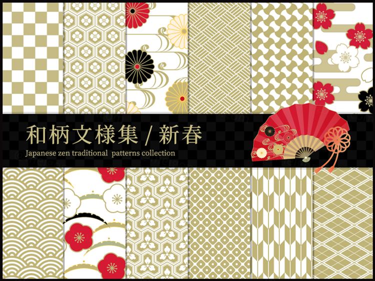 图穷联素材库 » 日式和风传统风格金色系节日感无缝拼接背景